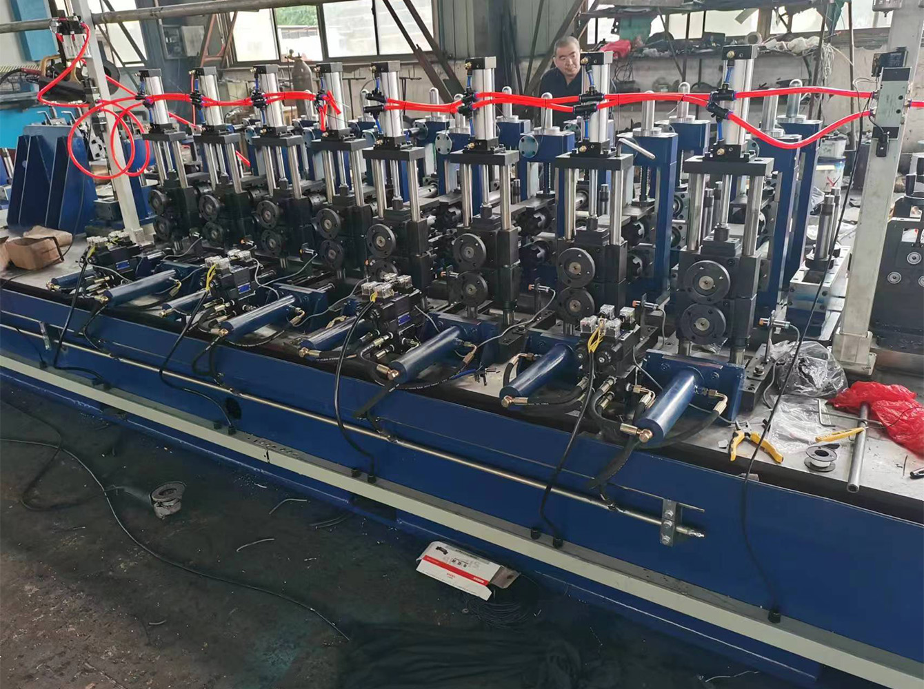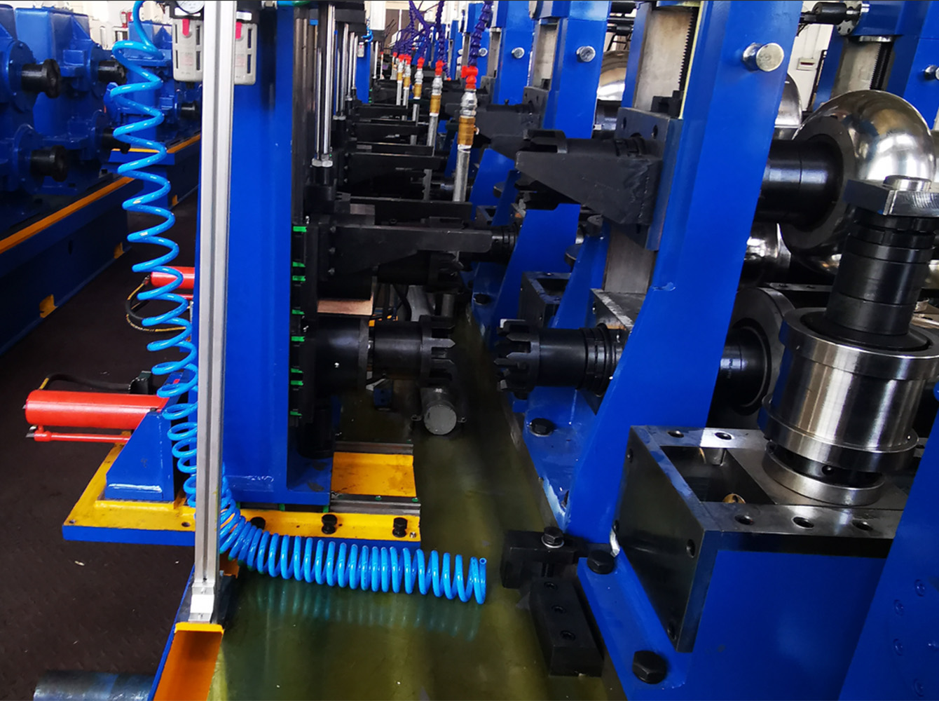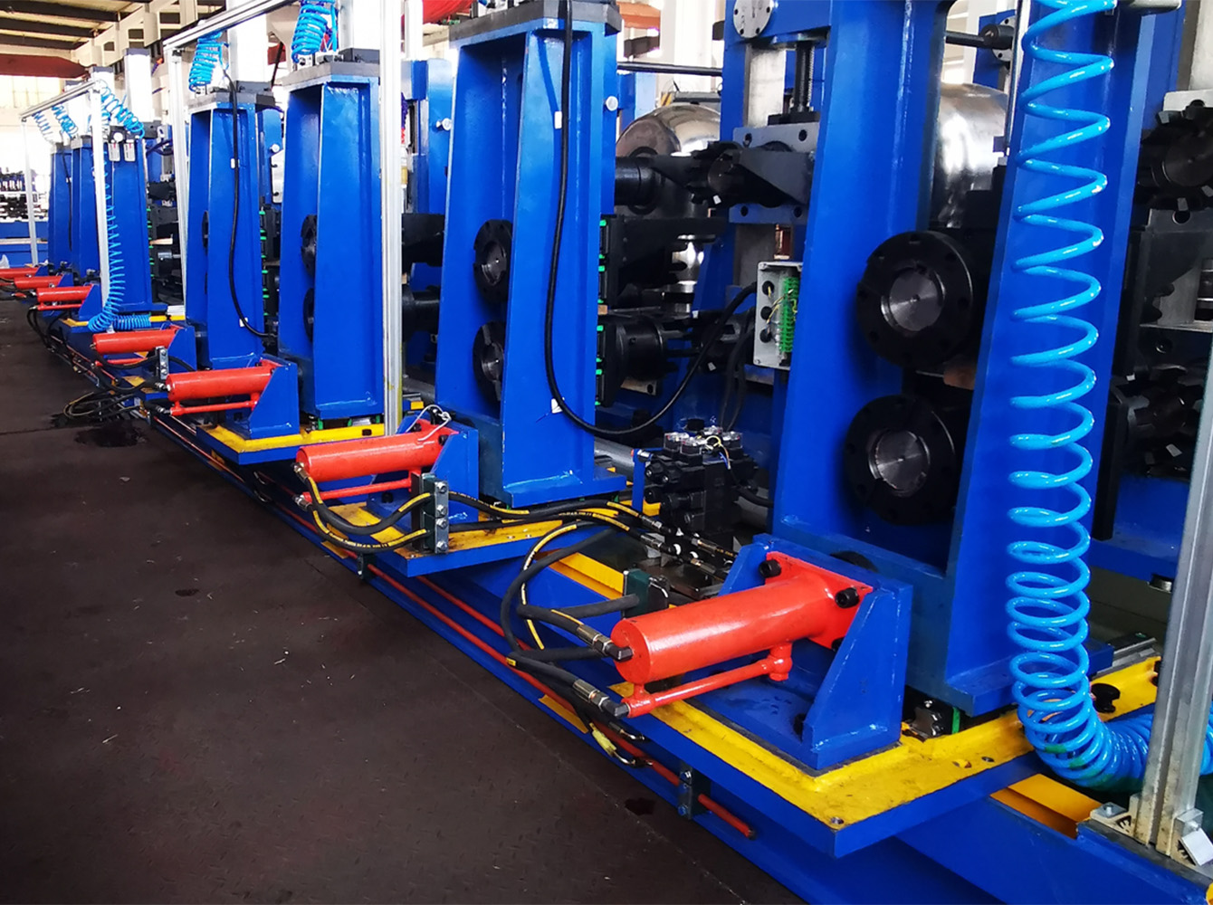 Quando os clientes precisam produzir diferentes tamanhos de tubo, eles precisam substituir todo ou parte da plataforma de troca rápida de rolos de conformação e dimensionamento de acordo com o tamanho e a espessura do tubo.
