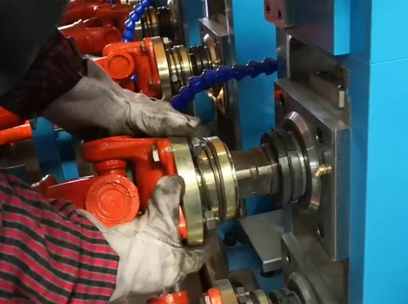 3.Inicie 'Início de Um Botão' novamente, e deixe o eixo do rolo de suporte horizontal se conectar automaticamente ao sistema de transmissão do acoplamento universal para completar o trabalho de substituição de rolo de tubo de diferentes tamanhos.